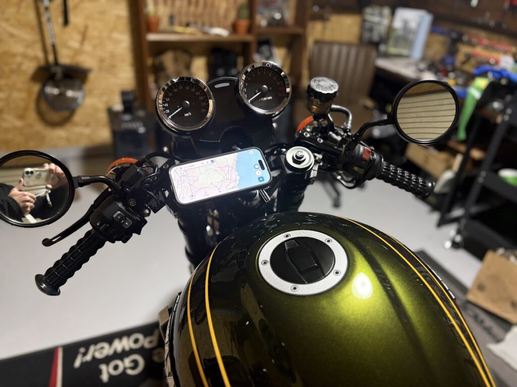 セパハン化したZ900RSに乗っていると、意外と悩むのがスマホのマウント位置です。