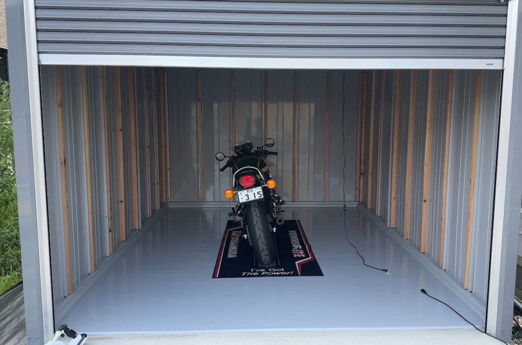 当時、ガレージが建つ前はハローストレージのバイクボックスを借りていました。
