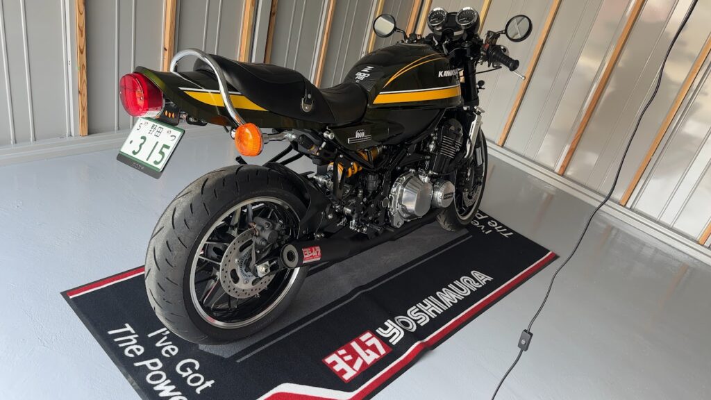 ちなみに初めてバイクをガレージに入れた日、サイドスタンドを出したまま、ガレージから出そうとしたらサイドスタンドで床を引っ掻いてしまいました。(涙)