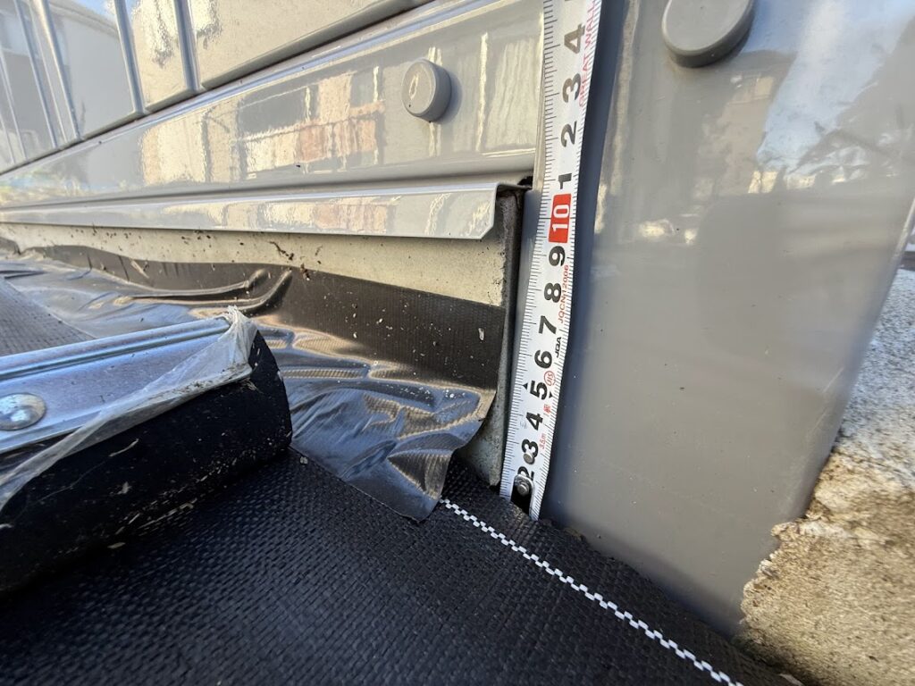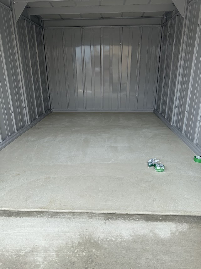 雨やシャッター側から浸水等あるといけないので、地面より高さを出して土間コンを打ってもらいました。10cmほど地面と離れているでしょうか。