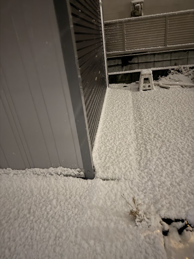 雪が振り始めて3時間後くらいのガレージです。