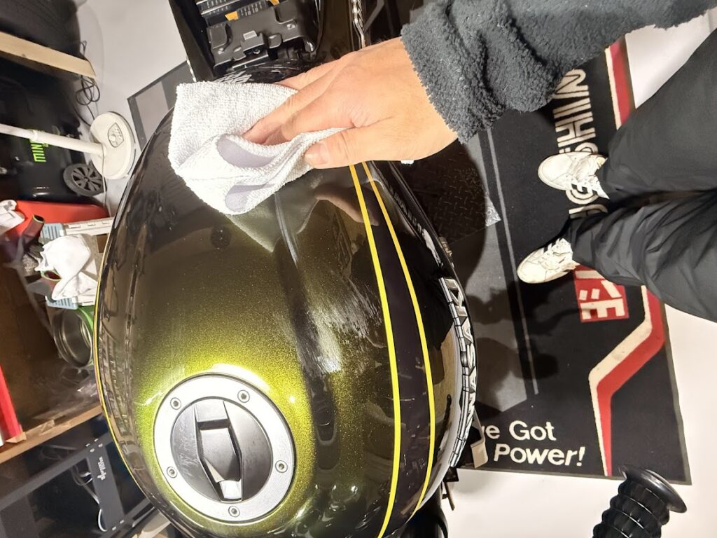 ノーコンパウンドなので、タンクやサイドカバーみたいな外装パーツにも気軽に使いやすいのがポイントだと思います。