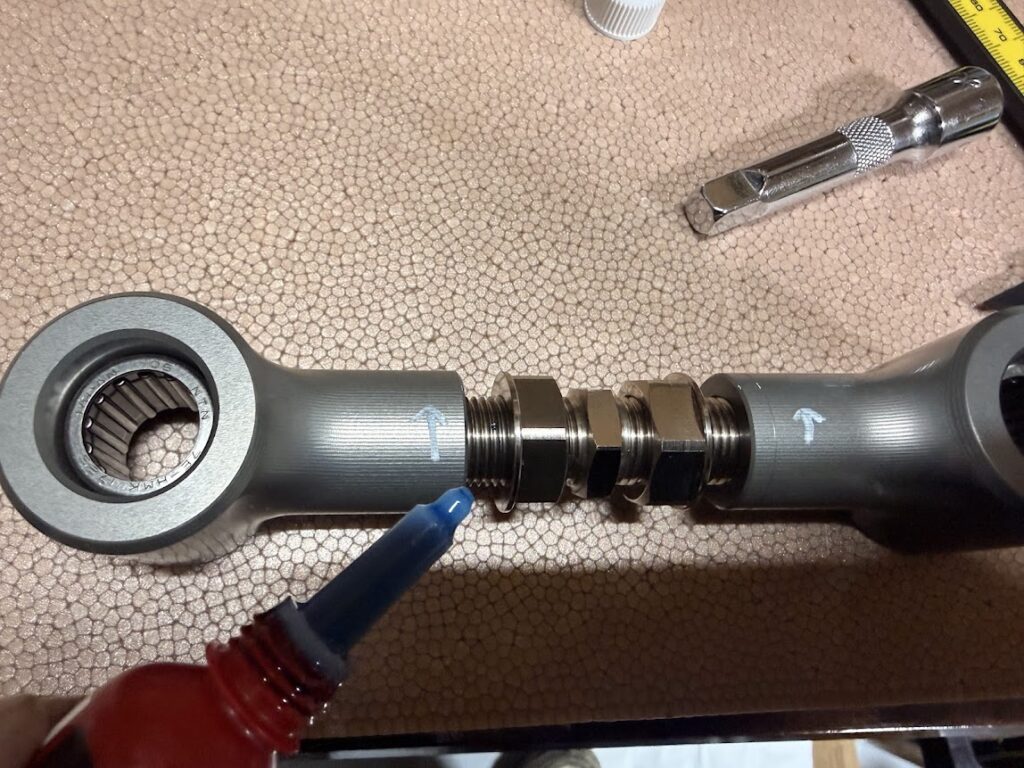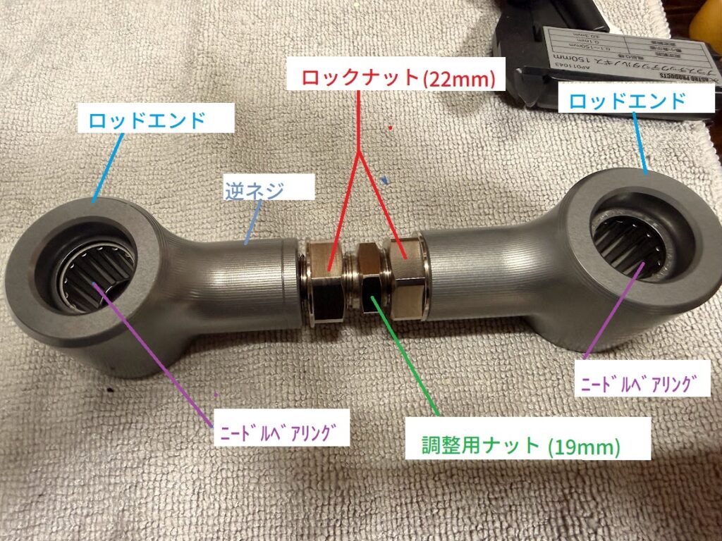 なので、本締めした方のロッドエンドが少し回って平行じゃなくなります。