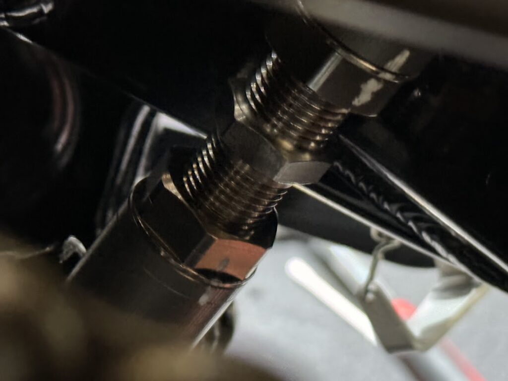 調整用ナットを19mmのスパナで抑えつつ、22mmのスパナで片方づつロックナットを締めるのですが、ここの調整が個人的には一番難しいかも。