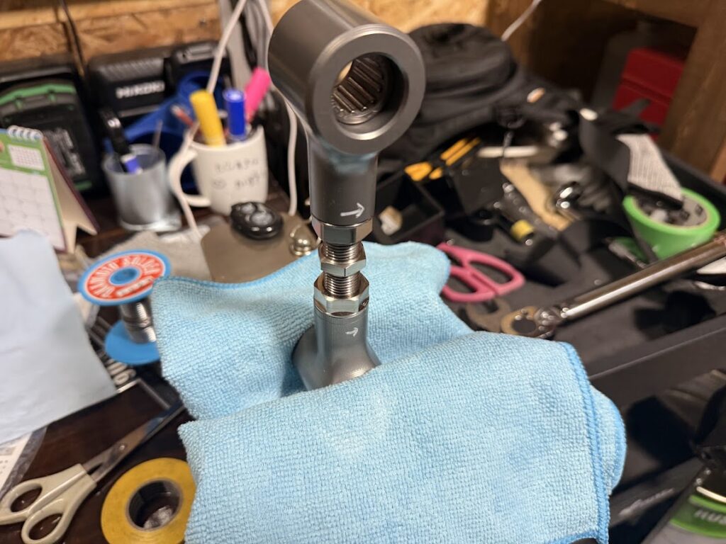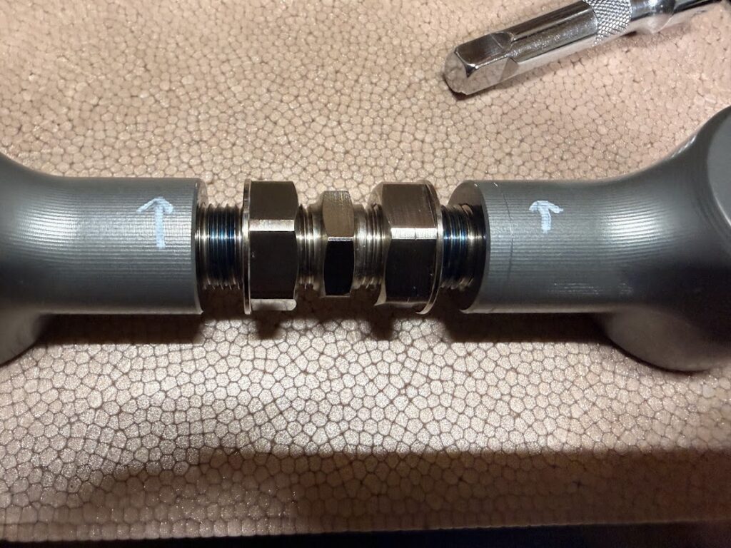ノギスで長さを確認しながら調整用ナットを回して調整してました。