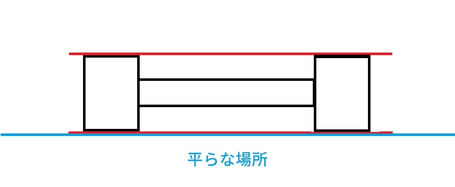 もう片方は平行になるように、平らな場所に置いて確認しながら微調整して本締めします。