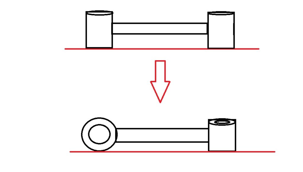 雑ですが、絵に書くとこんな感じで、ねじれた状態になります。