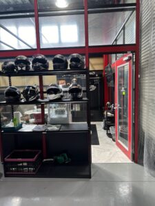 ここにヘルメット置き場があり、待合室でゆっくりするスペースがあります。