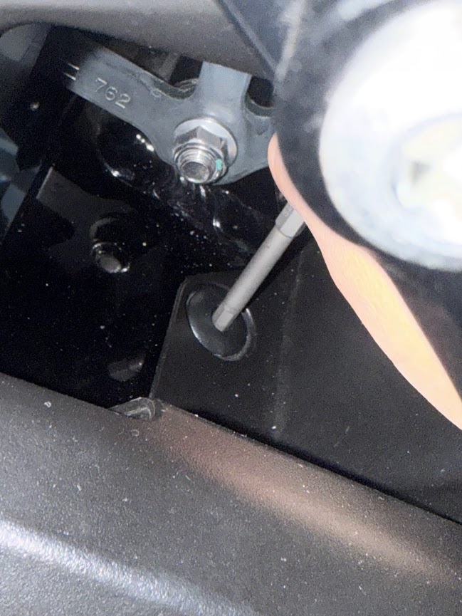 1️⃣サスの抵抗が抜けるポイントを見つけたらナット3個とボルト3本を外します。