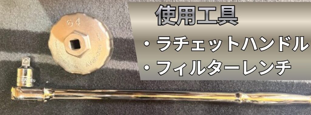 64mm(14面)のフィルターレンチを使って、オイルフィルターを外します。