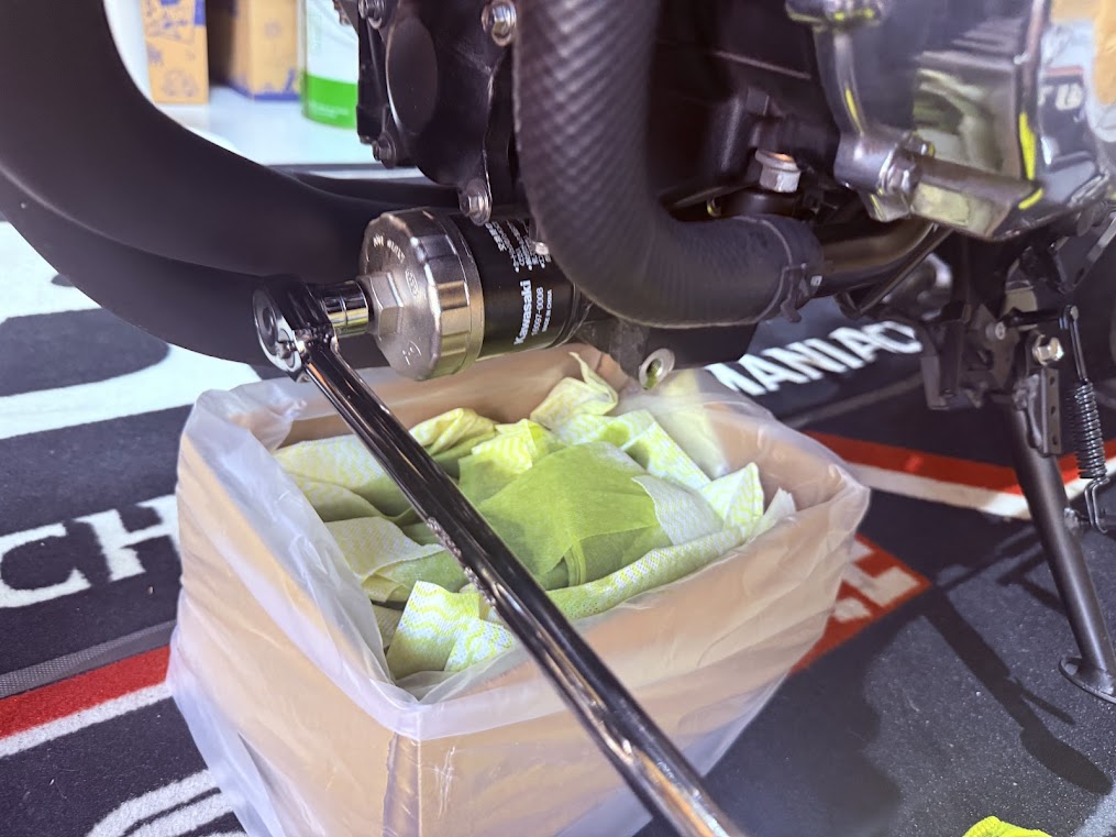 外すと残りのオイルが排出されるので15分ほど放置します。