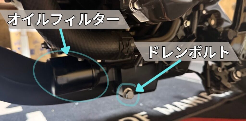 オイルフィルターの交換をしない方は15分ほどオイルが抜けるのを待って、こちらの工程へ→ドレンボルトを締める まで飛びます
