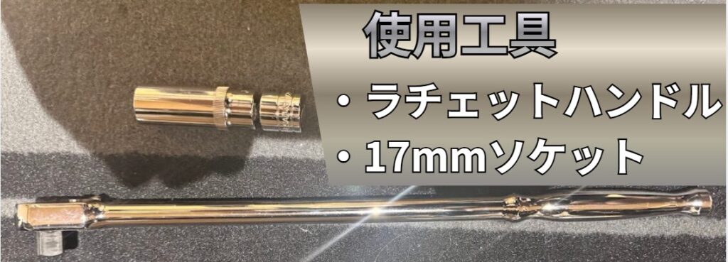 | 17mmのソケット | ・トネ(TONE) ソケット(6角) HP3S-17 差込角9.5mm(3/8″) 二面幅17mm | ・ドレンボルトの脱着 |