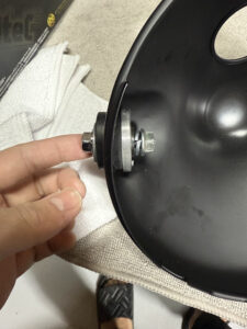また、55mmのボルトの場合、内側に5mmのカラーを入れないと、ネジ切ってある部分が長いせいで締まらないので、画像にはカラーが写ってしまっていますが、内側はこんな感じです。