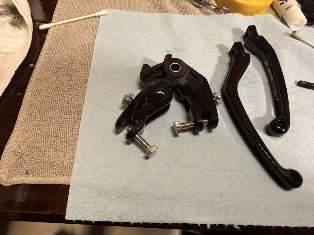 純正レバーは、以前手で磨いたものになりますが、放置していたのでくすんでいます。