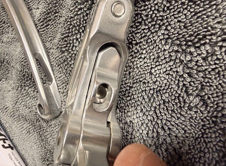 アジャスターノブとボルトは、自分で外すのが困難だったのでそのままにしましたが、やはり研磨中にノブが取れるボルトが折れる可能性があるので外しますとメールが来ました。